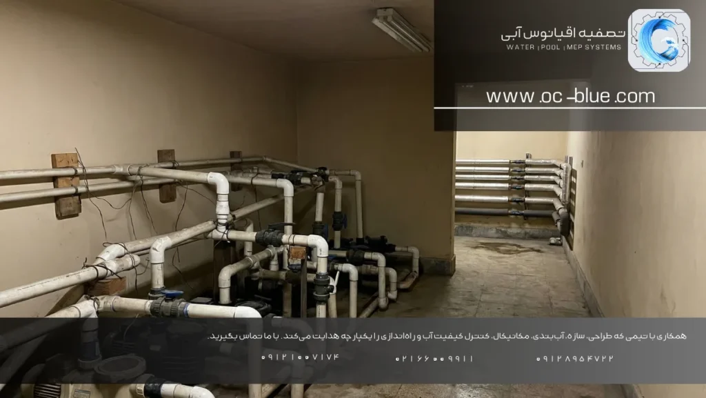 تجهیزات اصلی موتورخانه شامل پمپ، فیلتر (ماسه‌ای یا کارتریجی)، سیستم گرمایش (هیتر یا مبدل حرارتی) و تجهیزات ضدعفونی (کلرزنی، ازن، UV و…) است. انتخاب هر کدام باید متناسب با حجم آب، کاربری، دمای محیط و سطح استفاده باشد. طراحی موتورخانه هم نباید دست‌کم گرفته شود. قرارگیری پمپ بالاتر یا پایین‌تر از سطح آب، قطر لوله‌ها و تعداد اتصالات، همگی در کاهش افت فشار و افزایش بازدهی مؤثرند. اقیانوس آبی با تکیه بر تجربهٔ مهندسی خود، برای هر پروژه سیستم تصفیه متناسب طراحی و اجرا می‌کند و از پمپ‌های با راندمان بالا و فیلتراسیون استاندارد استفاده می‌کند تا تعادل آب و کیفیت آن همیشه در بهترین حالت باشد.